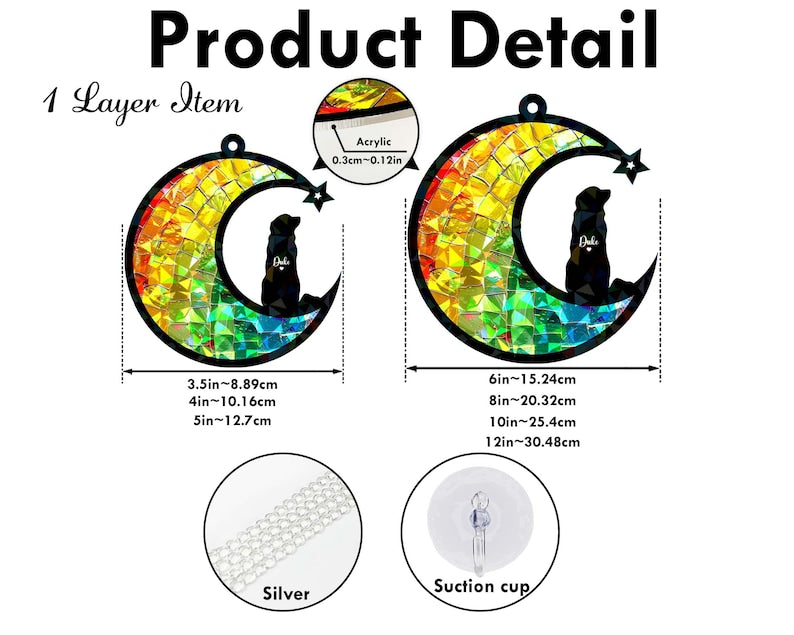 Larger sizes (6in, 8in): Comes with a black metal chain, keyring, and suction cup for effortless hanging on windows, walls, or car interiors.