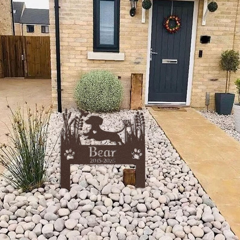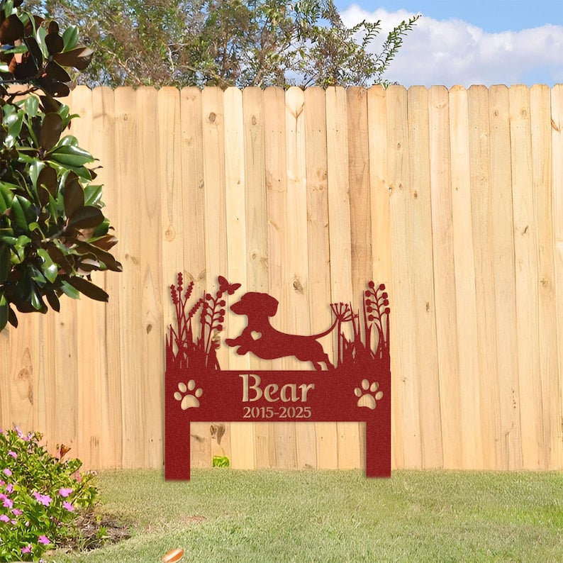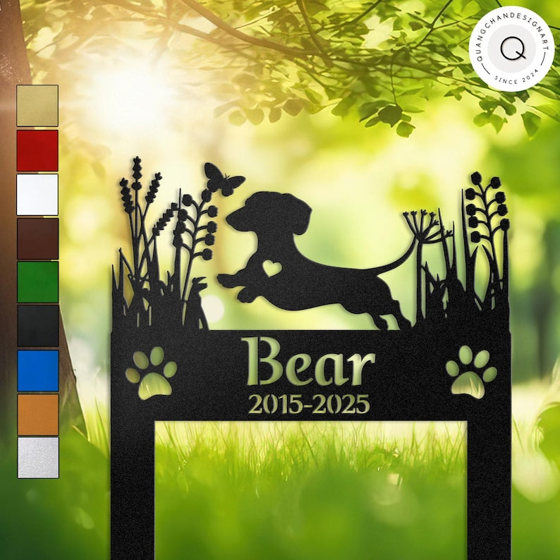 Custom Dachshund Dog Memorial Garden Stake, Personalized Pet Grave Marker, Outdoor Tribute for Sausage Dog Lovers, Metal Garden Decor