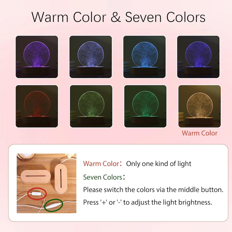 ✅ LED Night Light – The acrylic panel sits on a wooden base with warm LED lighting, adding a cozy glow to bedrooms, desks, or memorial corners.