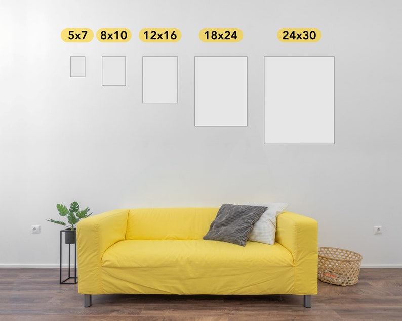 5x7, 10x8, 14x11, 16x12, 20x16, 18x24, and more upon request.