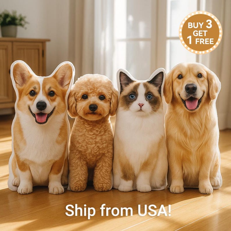 Custom Pet Pillow β Personalized Dog or Cat Shaped Cushion, Pet Portrait Plush Keepsake, Funny Gift for Animal Lovers