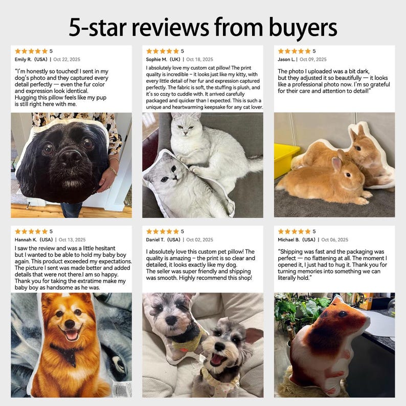β¨ Turn your beloved pet (or baby, family, or friend!) into a huggable custom pillow. Perfect for birthdays, Christmas, anniversaries, or simply as a sweet keepsake. Each pillow is handcrafted with love and made to order, so youβll always have your furry (or human) best friend by your side!