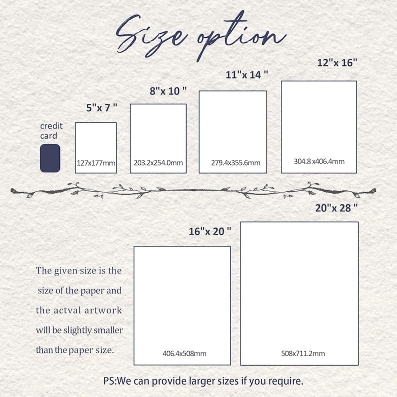 1. Printed on high-quality watercolor-texture paper, keeping the painting’s beauty, depth, and refined details.