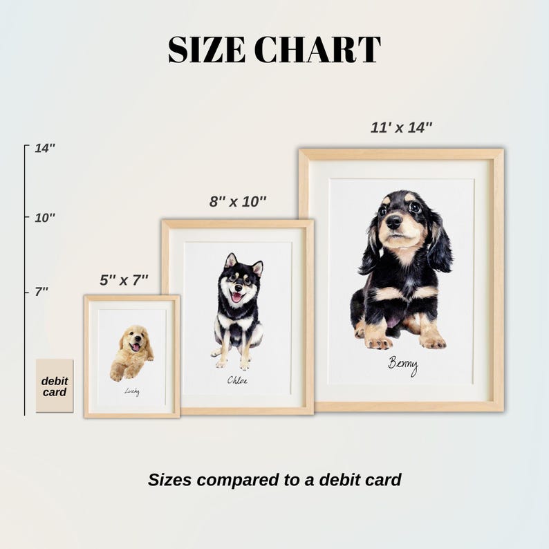 Here, you can order 100% hand-painted custom pet watercolor portraits. Each piece is created on 300g high-quality watercolor paper using premium watercolor paints, based on the photos you provide and the size you select. Our portraits are crafted by a skilled watercolor artist with years of experience.