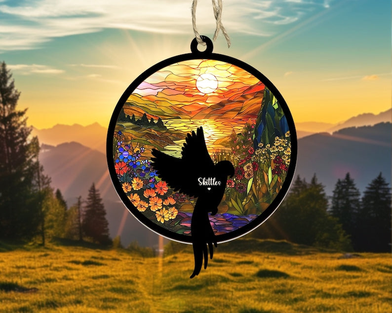Personalized Birds Memorial Suncatcher, Parrot Suncatcher, Bird Lovers Gift, Bird Loss Gift, Loss Of Pet Gift, Pet Loss Sympathy Gift