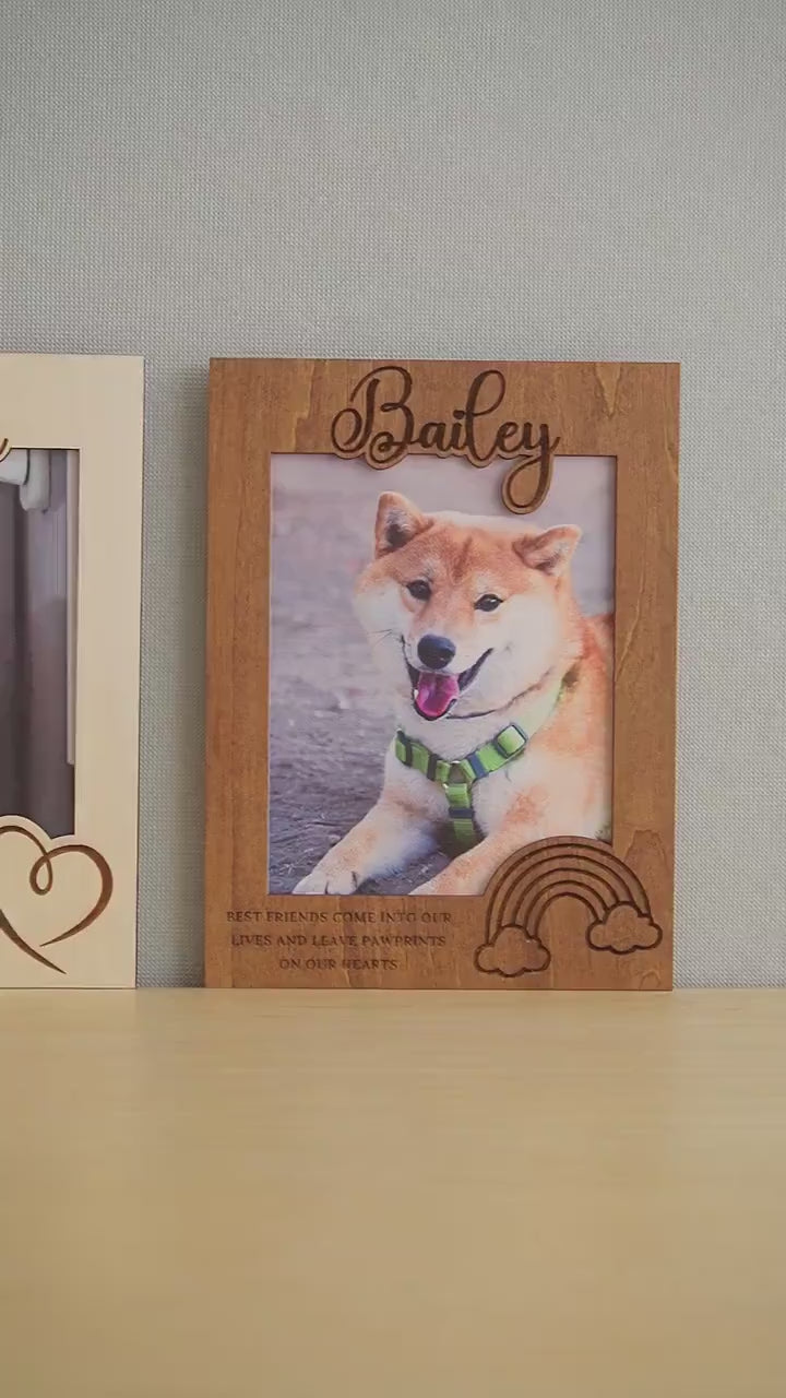 This beautiful personalised photo frame is a lovely unique gift idea to remember your special four-legged friend that has passed over the rainbow bridge or the perfect memorial gift for your family members, friends or indeed any dog lover, Cat mom or pet owner you love. Professionally laser engraved with names or text of your choice makes for an extra sentimental Gift or Decor item for the home.