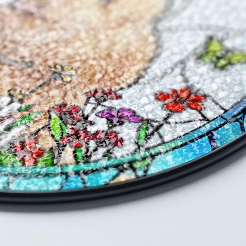 Cherish the memory of your beloved pet with our beautifully crafted stained glass artwork. Handcrafted by skilled artisans, each piece is uniquely designed to capture the essence of your furry friend. Using the photos you provide, we create a stunning portrait of your "partner" and print it onto the glass without the use of soldering. The result is a captivating work of art, with intricate details and vibrant colors that will leave a lasting impression.