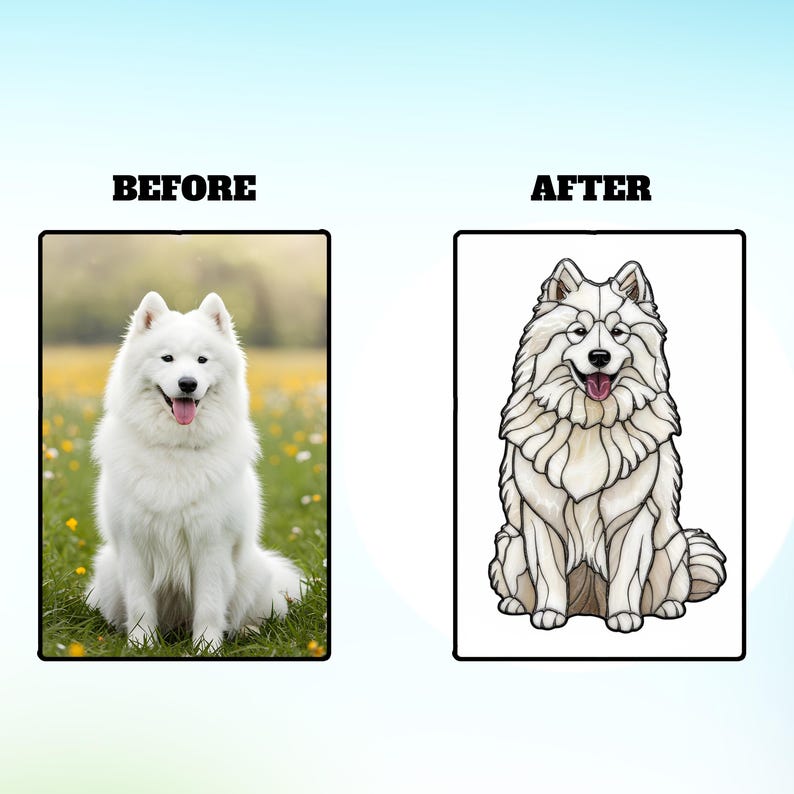 • Your original pet photo is transformed into stained glass artwork