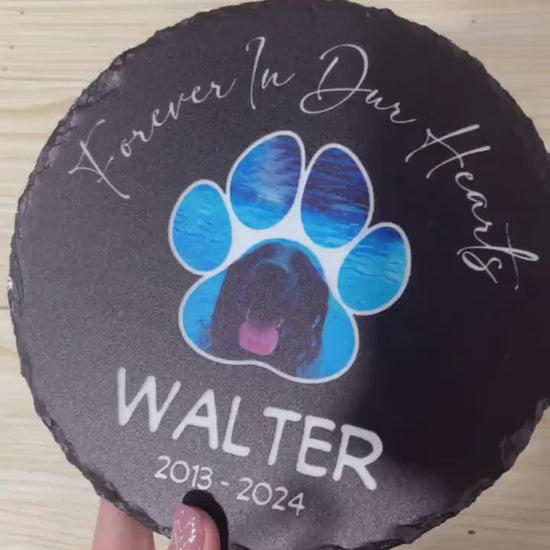 Honor your beloved furry friend with a personalized pet memorial stone made from high-quality, waterproof slate stone. This durable stone is the perfect tribute to your pet, providing a lasting keepsake to cherish for years to come. Whether for a dog headstone, cat memorial stone, or any other cherished pet, this memorial plaque is a heartfelt way to celebrate their life and memory.