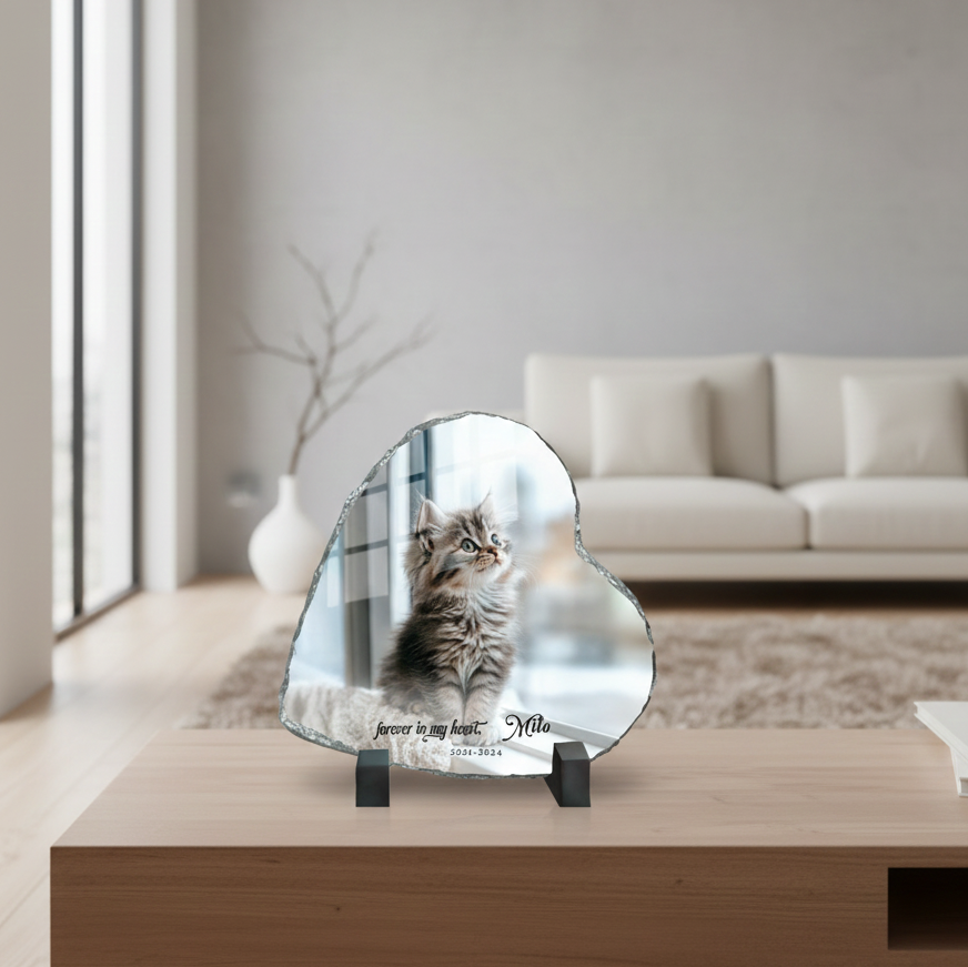 Personalized Pet Memorial Photo Slate Stone: Cat Loss Gift