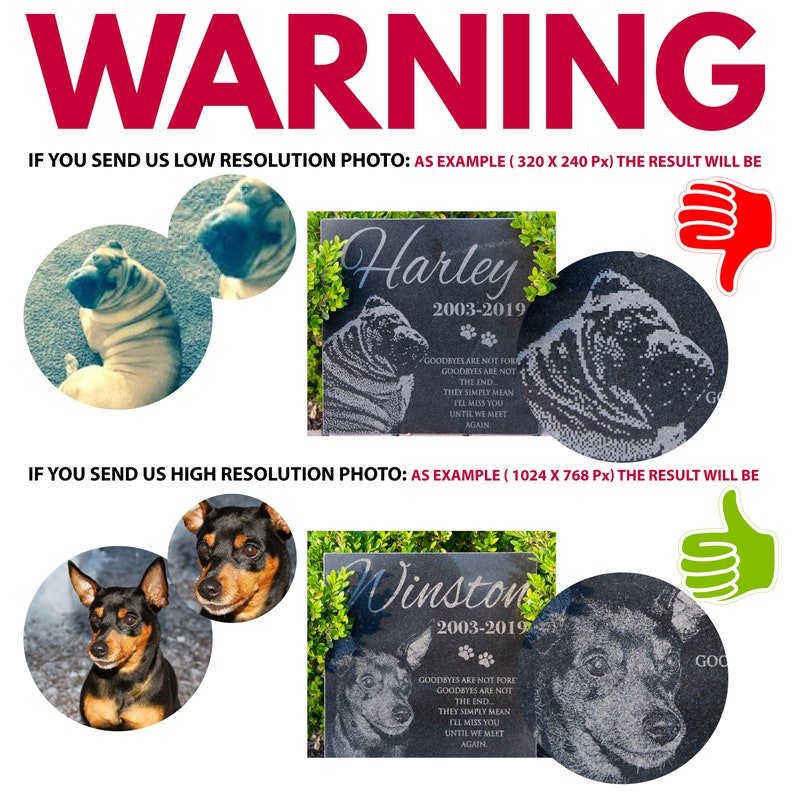 HOW TO CUSTOMIZE ?? - Customization process is very simple and easy, please choose your size first, then place your order, you can either leave a seller note or send us a message after your order is placed. Please do not forget to send the picture that you would like to use. We will make your memorial stone ready within two business day and delivery takes 3-6 days for the continental United States.